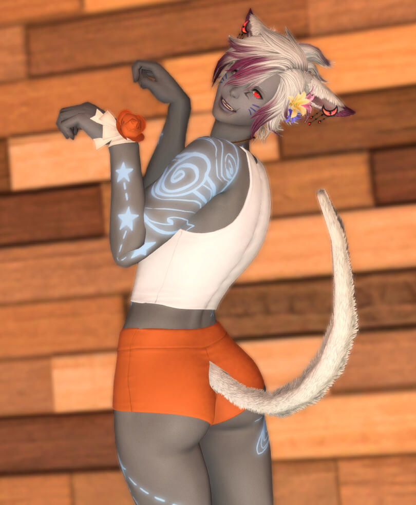 Mikh'a is a fun loving Keeper Miqo! He grew up just outside of Gridania in a clan like most, but also got kicked out like most (lmao). Ever since, he's worked his way through the Venue scene, from bartending, to waiting, and his favorite - courting. Mikh'a absolutely loves to make new friends and meet new people, so don't be afraid! While he may bite, if you taste good maybe you'll get him coming back for more and more~. Otherwise, feel free to give him a drinking challenge.